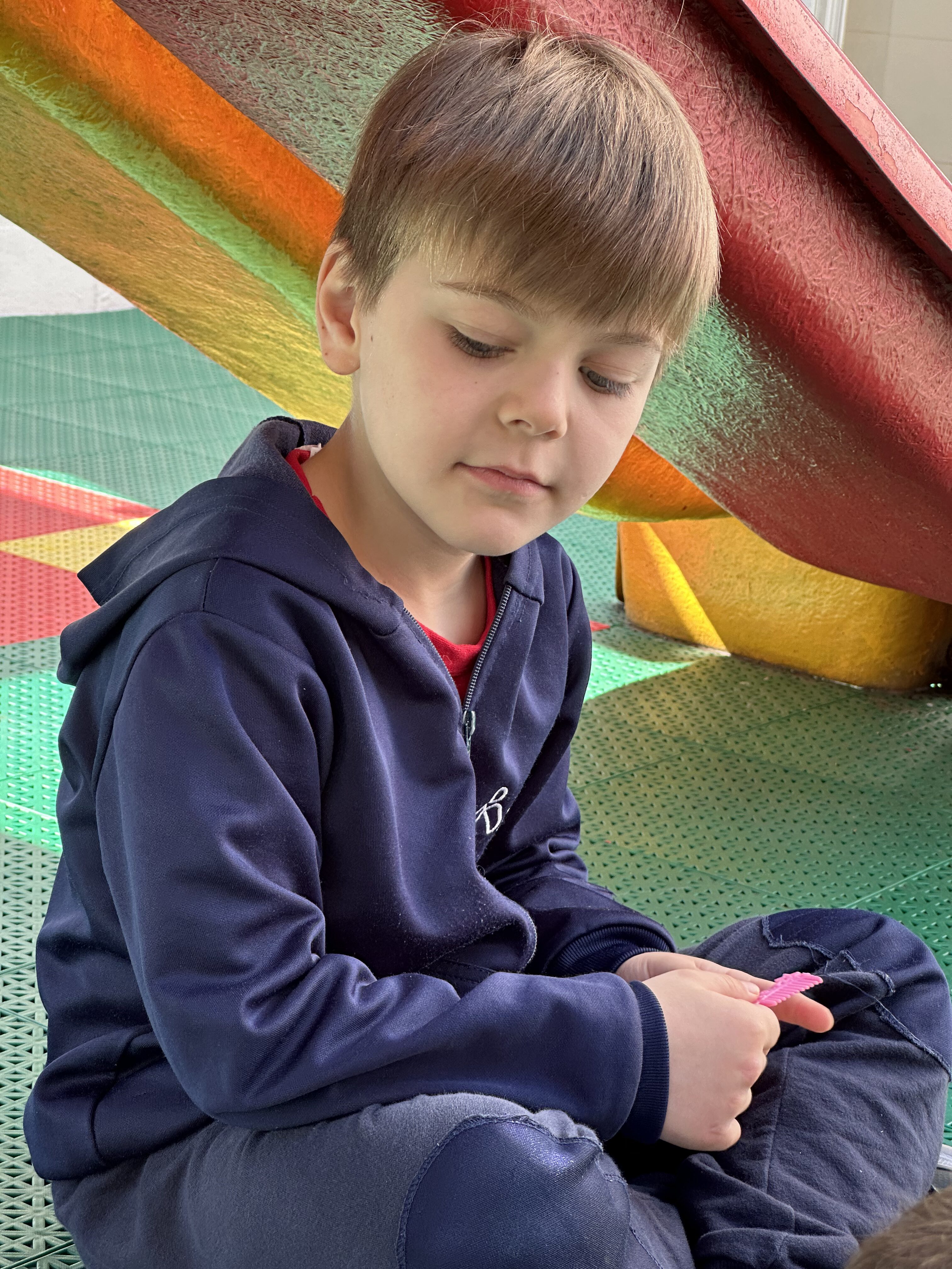 A turma do I período utiliza diversos espaços como, o parque arborizado, a quadra esportiva, salas diversas, espaço com brinquedos como oficina, mercearia, casinha, motocas, play com brinquedos diversos, entre outros.